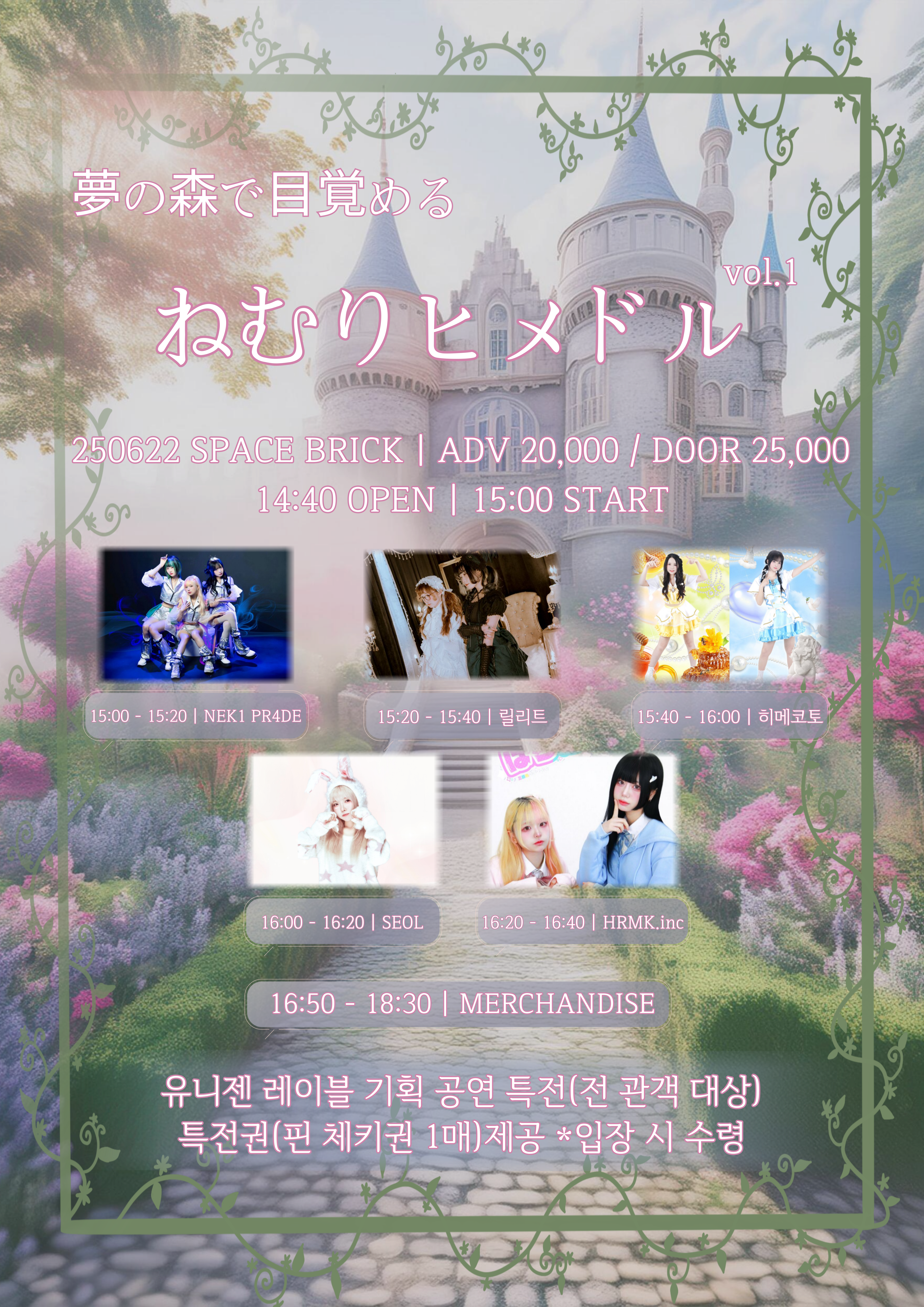 꿈꾸는 숲속에서 길 잃은 라이브 아이돌을 구해주세요! 매월 주말에 열리는 정기 공연입니다.
