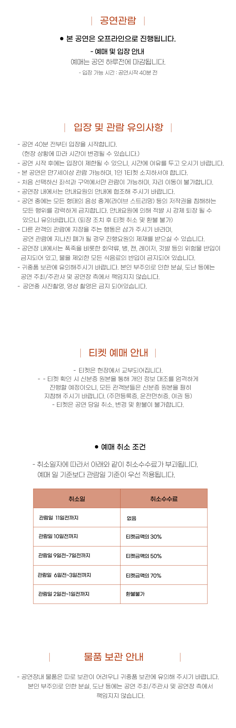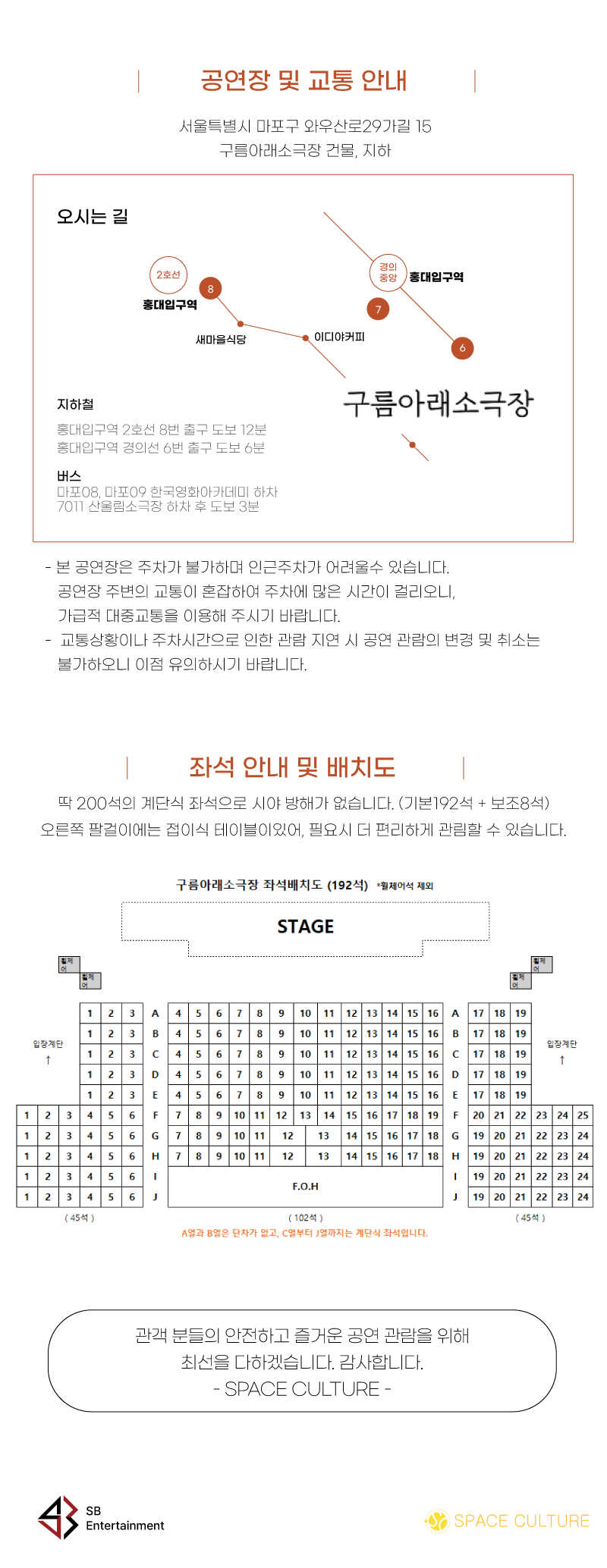 본공연은 지정석이 아니며, 선착순 자유석으로 배정되어집니다.