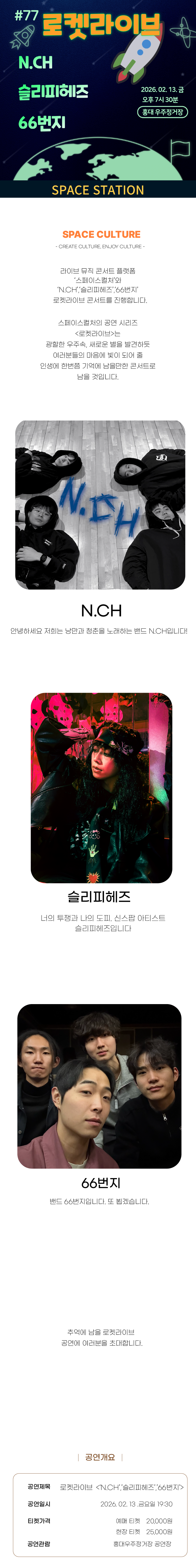 로켓라이브 [N.CH,슬리피헤즈,66번지] 콘서트 2026년 02월 13일 금 오후 7시 30분